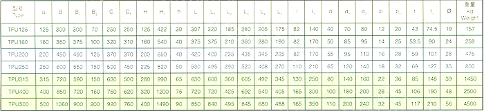 TPA125、TPA160、TPA200、TPA250、TPA315、TPA400、TPA500、通用型減速機(jī)形式及外形尺寸