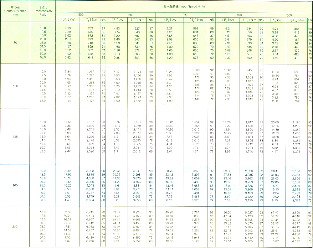 五、平面包絡(luò)環(huán)面蝸桿減速器額定輸入軸功率表