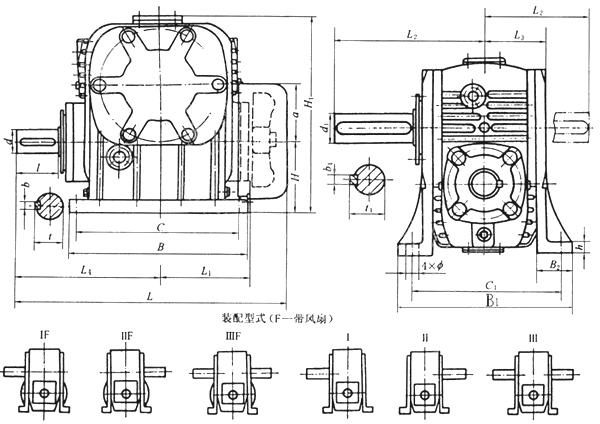 TPG80、TPG100、通用型減速機(jī)形式及外形尺寸(Ⅰ—Ⅲ)