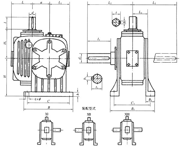 | TPG80、TPG100、通用型減速機(jī)形式及外形尺寸(Ⅺ—XIII) | |||||||||||||||||||||||||||||||||||||||||||||||||||||||||||||||||||||||||||||||||