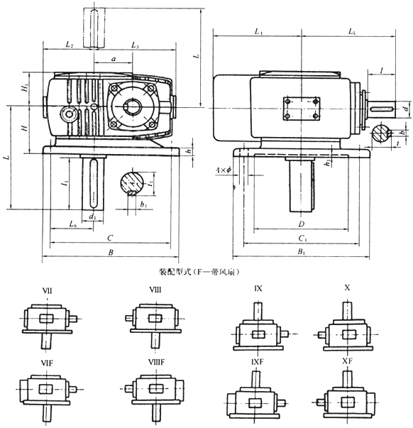 TPG80、TPG100、通用型減速機(jī)形式及外形尺寸(Ⅶ—Ⅹ)
