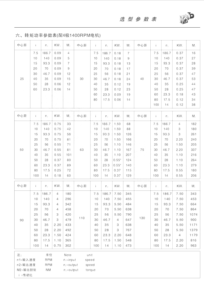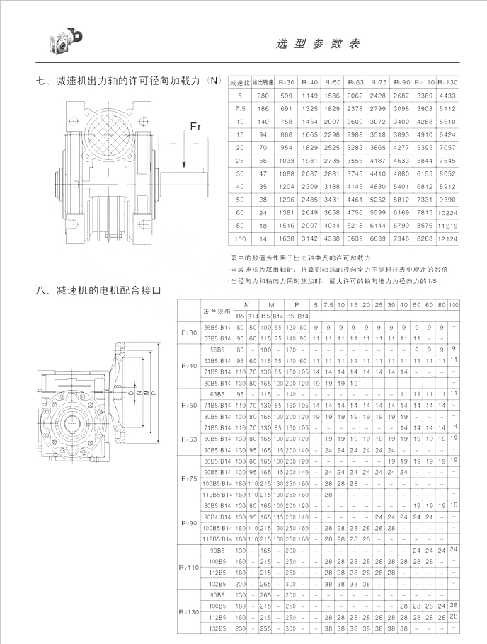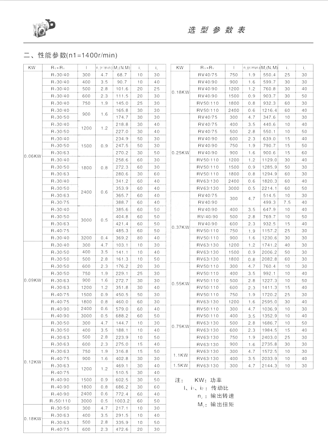 | RV系列鋁合金蝸輪蝸桿減速機(jī)-選型參數(shù)表 |