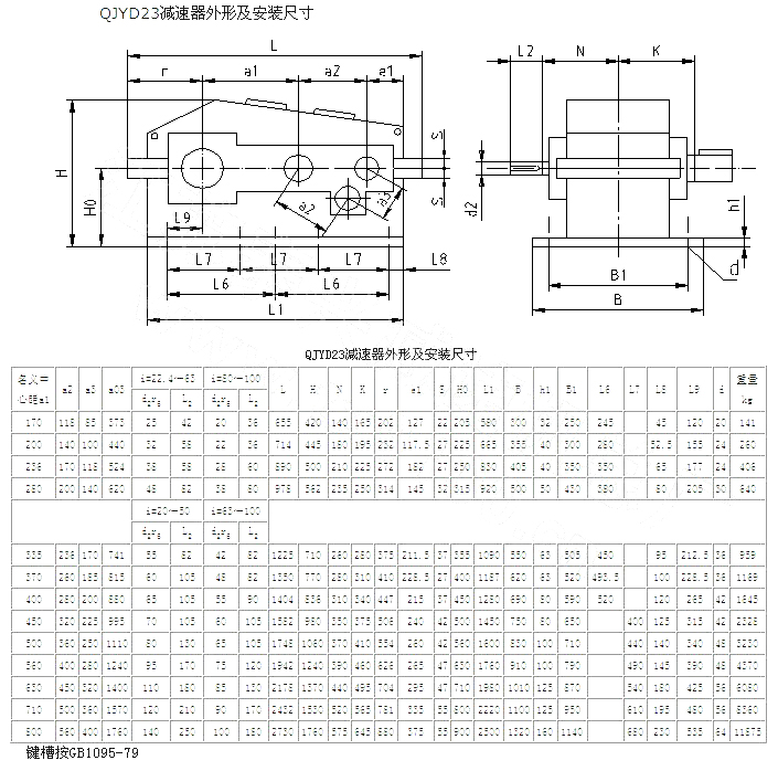 | QYD、QJYD起重用減速機外形及安裝尺寸 |