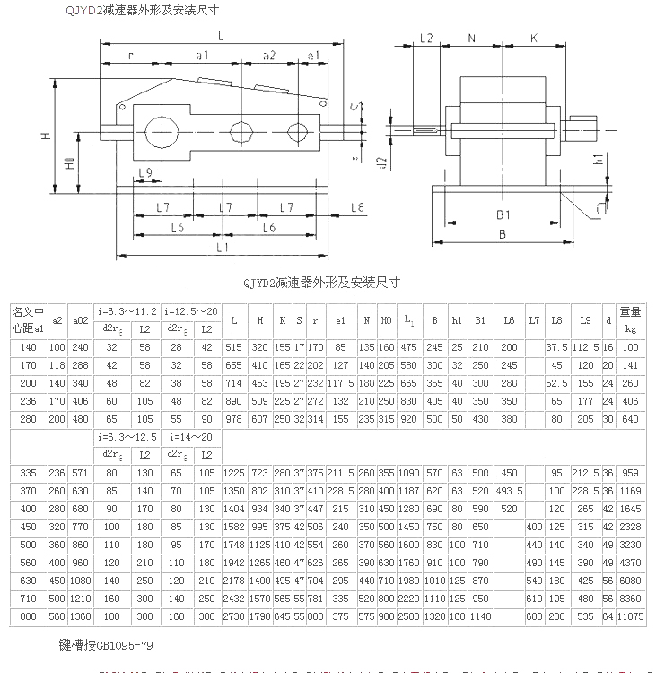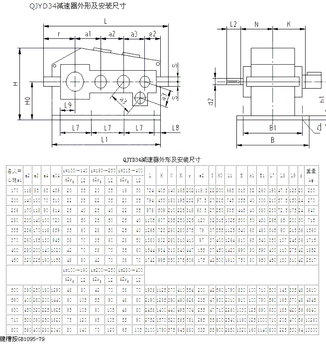 | QYD、QJYD起重用減速機(jī)外形及安裝尺寸 |