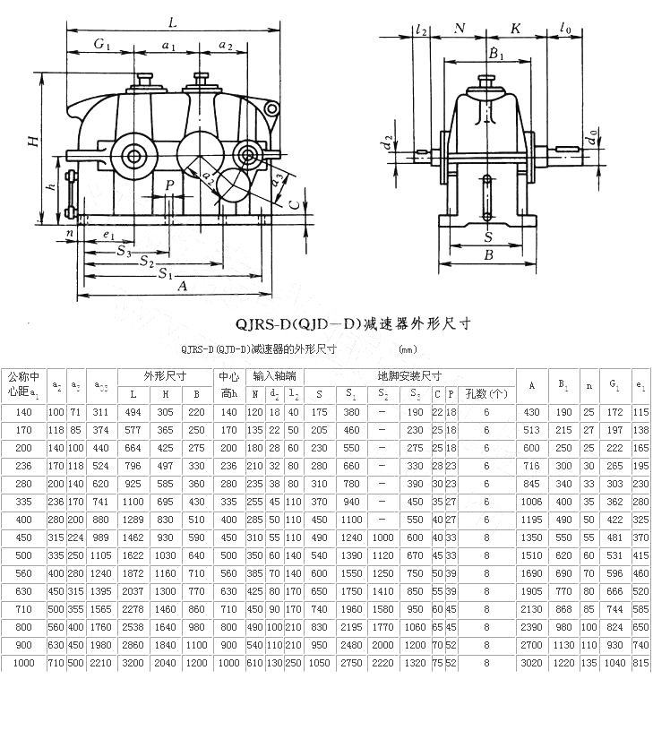 | QJRS-D中硬齒面減速機圖紙尺寸 |