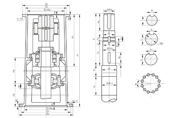 注:圖示所注“h”僅與本樣本BLD、LC-Ⅱ、DC-Ⅱ系列減速機(jī)相配,如選用其他型號(hào)或其他廠家減速機(jī),“h”需另行計(jì)算。增高后的LSJ型機(jī)架其下部空間高度可容納205、206或207型雙端面機(jī)械密封。