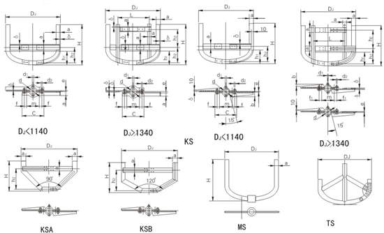 橢圓底框式-KS、直角錐底框式-KSA、鈍角錐底框式-KSB、錨式-MS、搪玻璃專用錨式-TS
