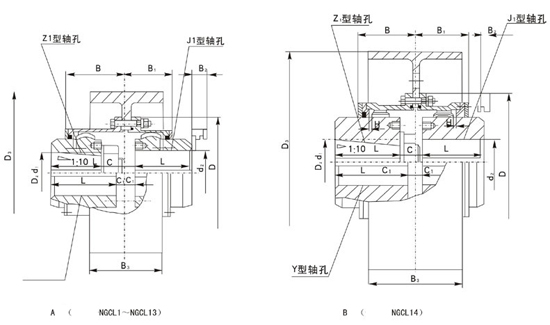 NGCL型鼓形齒式聯(lián)軸器基本參數(shù)和主要尺寸