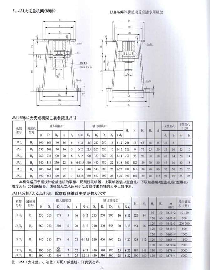 錐度為1:20的聯(lián)軸器。該機架無支承適于反應器傳來的軸向力不大時使用。