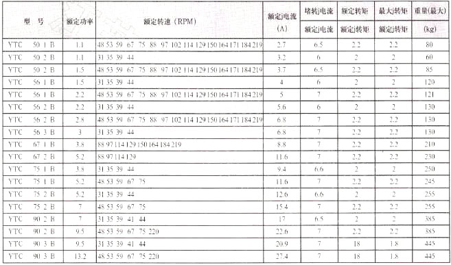 YTC型系列齒輪減速三相異步電動機相關(guān)參數(shù)