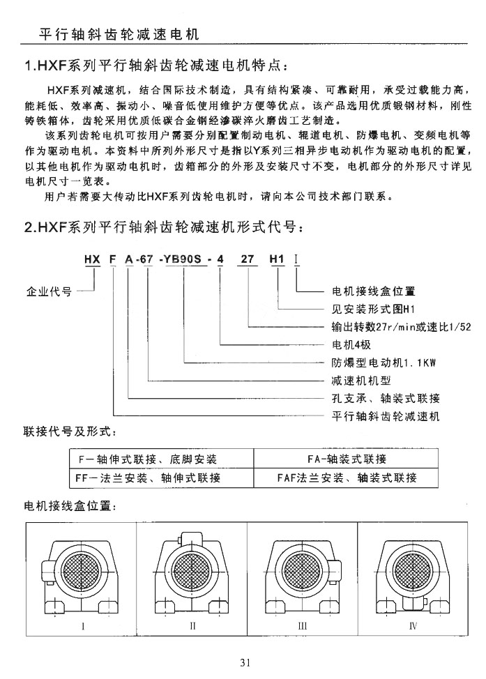 一、HXF系列平行軸斜齒輪減速電機特點: